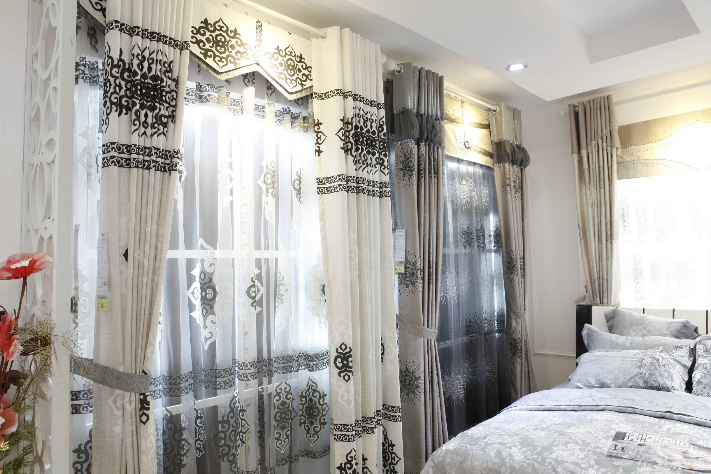 賓館、寫字樓用窗簾不同于家用窗簾,宜用花型大方的裝飾布,如直條文、凈色布等,款式力求簡潔,以滿足大眾審美要求。