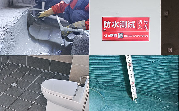 下沉空間井架保護(hù)、丙綸布加強(qiáng)保護(hù)、防水壩保護(hù),總共18道研發(fā)工藝致力根除衛(wèi)生間防水防潮問題。